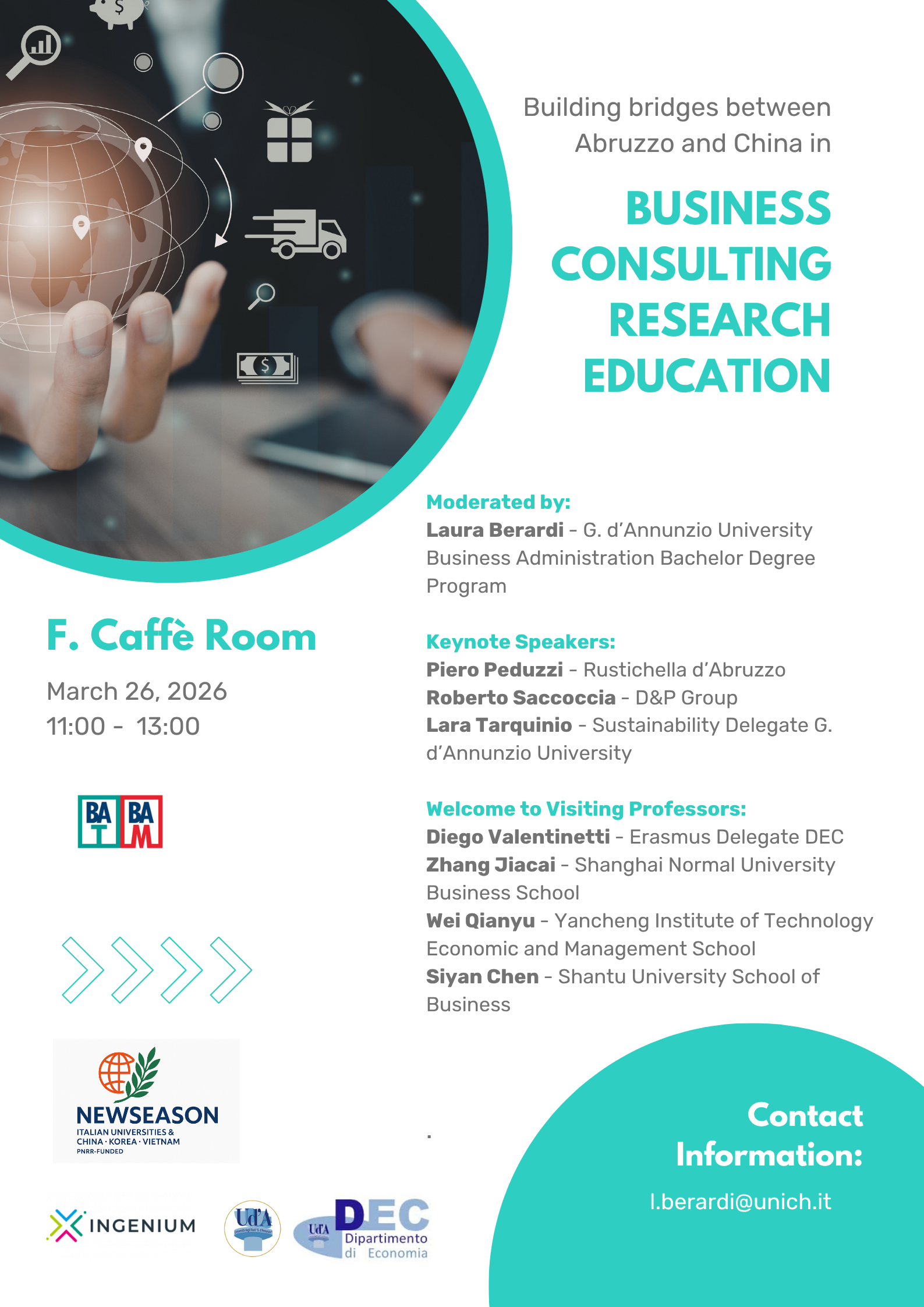 Nell’ambito del progetto di Ateneo Newseason, il Dipartimento di Economia dell’Università “G. d’Annunzio” è lieto di invitare studenti, docenti e stakeholder al seminario internazionale:
